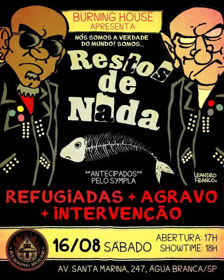 No sábado, 16 de agosto, a casa de show Burning House (@burninghousesp), em São Paulo, será palco de uma celebração histórica do punk rock nacional, reunindo quatro nomes que representam diferentes gerações e vertentes do gênero: Restos de Nada, Refugiadas, Agravo e Intervenção.
