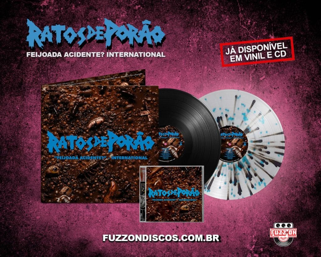 O álbum ‘”Feijoada Acidente?” – International’, lançado em 1995 pelo Ratos de Porão, que na época contava com João Gordo (vocal), Jão (guitarra), Pica-Pau (baixo) e Boka (bateria), ganha relançamento em vinil pela Fuzz On Discos, união dos selos AMM (All Music Matters), Melômano Discos e Neves Records.