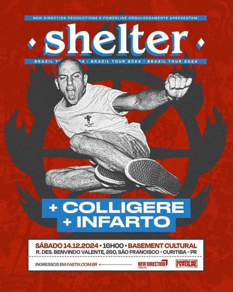Formado pelo vocalista Ray Cappo no final da década de 1980, o Shelter, que prega conceitos religiosos Hare Krishna e toca um punk rock/hardcore melódico e enérgico, está de volta ao Brasil e com uma agenda que vai além dos dois shows, em Curitiba (14/12, Basement Cultural) e outro em São Paulo (15/12, Carioca Club). A realização é conjunta entre New Direction Productions e Powerline Music Books.