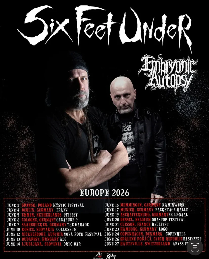 O SIX FEET UNDER retorna aos palcos europeus em junho com o apoio do Embryonic Autopsy . Em julho, a banda inicia uma turnê como atração principal na América do Norte com o apoio do Kataklysm e do Wormhole .
