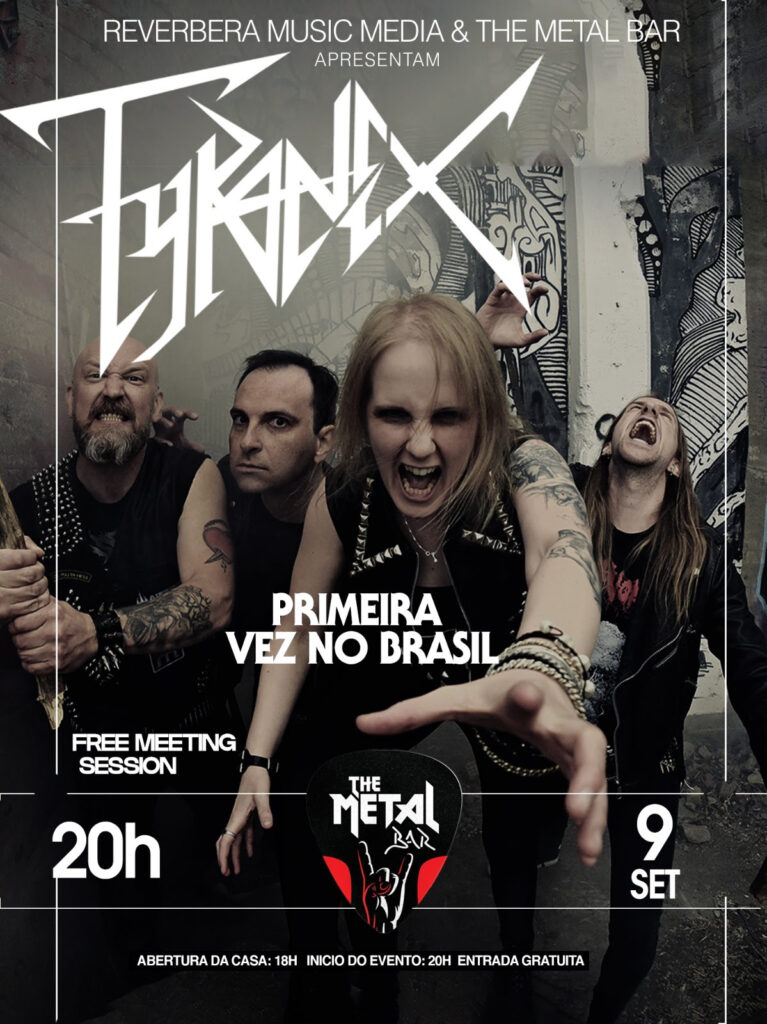 A banda sueca de thrash/speed metal TYRANEX finalmente desembarca no Brasil para uma apresentação única no Setembro Negro Festival. A banda se apresenta no domingo, dia 7 de setembro, ao lado de nomes como Nervochaos, The Mist, Power Trip, Candlemass e Triptykon plays Celtic Frost. Os ingressos estão disponíveis através do site Clube do Ingresso.