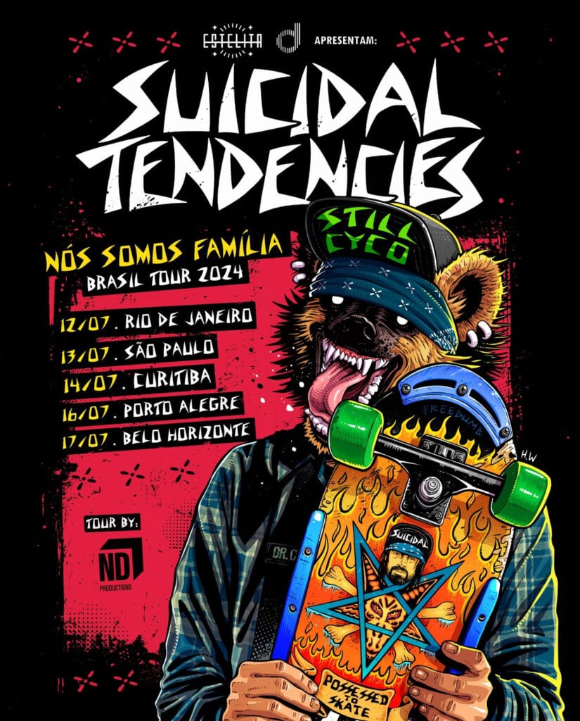 Com mais de quatro décadas na ativa, compondo, gravando e shows constantes ao redor do mundo, o Suicidal Tendencies é uma lenda do crossover thrash, uma banda que levanta a bandeira do skate rock e ainda é capaz de brilhar os olhos das novas gerações. Em julho, a banda norte-americana sempre liderada pelo icônico vocalista Mike Muir (também conhecido como “Cyco Miko”) retorna ao Brasil com a turnê Nós Somos Família, um giro exclusivo para o país e a pedido da própria banda, com cinco shows.