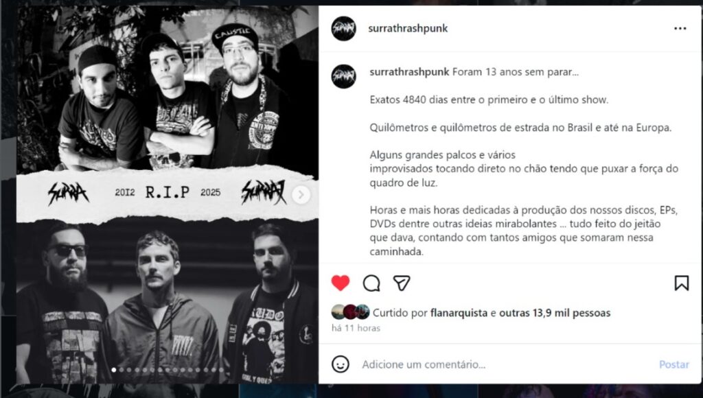 “Entregamos tudo o que tínhamos desde o primeiro ensaio da banda: nosso tempo, nossa energia e, principalmente, nossa verdade. Mas chega um momento em que a vida pede silêncio…”, declarou o grupo.