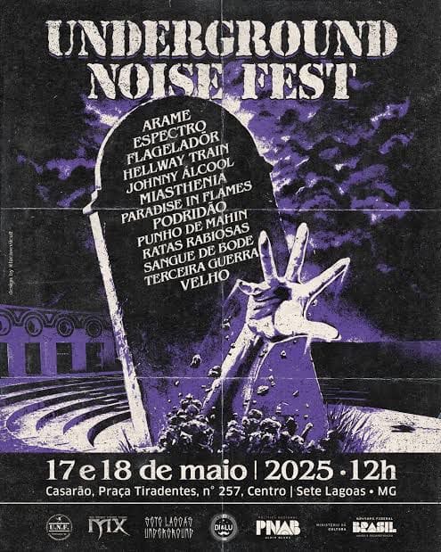 Preparem seus ouvidos e fortaleçam o pescoço, pois a maior edição do Underground Noise Fest está chegando para sacudir Sete Lagoas! Nos dias 17 e 18 de maio de 2025, o Centro Cultural Nhô-Quim Drummond (Casarão) será palco de dois dias intensos dedicados ao mais puro underground autoral, reunindo bandas de diversas vertentes e cantos do Brasil, que vai do Crust , Hardcore, Heavy Metal , Death Metal ao Black Metal .