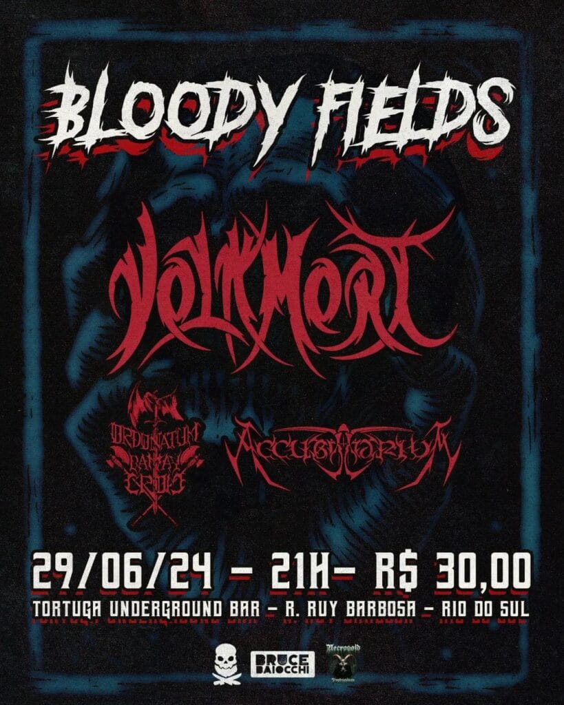 Seguindo com tudo na divulgação do seu novo álbum, “Fallen In The Bloody Field”, a banda de Death/Doom Metal VOLKMORT acaba de ser confirmada como headliner em mais um importante evento catarinense. Trata-se do ‘Bloody Fields’, que acontece no dia 29/06/2024 no Tortuga Underground, em Rio do Sul/SC, e contará também com Ordo Natu Bamay Crom e Accubitorium. Confira abaixo o cartaz e serviço completo para mais informações: