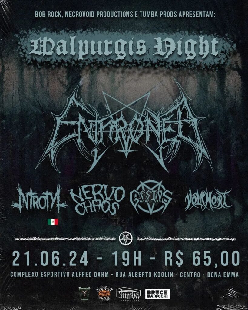 Em paralelo, o VOLKMORT foi confirmado ao lado de Enthroned no ‘Walpurgis Night’ no dia 21/06 em Dona Emma/SC, este evento também contará com NervoChaos, Introtyl e Gestos e acontecerá no Complexo Esportivo Alfred Dahm, veja: