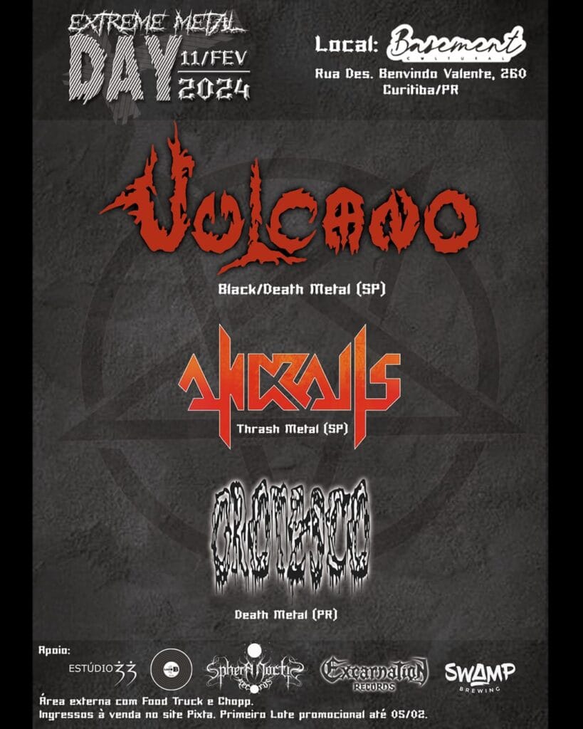 Contagem regressiva para a lenda do Metal Extremo mundial, VULCANO, se apresentar novamente em Curitiba/PR. A banda estará no Basement Cultural, onde neste fim de semana (11/02/2024) acontece o ‘Extreme Metal Day’, que contará também com Andralls e Grotesco. Confira abaixo o cartaz e serviço completo para mais informações: